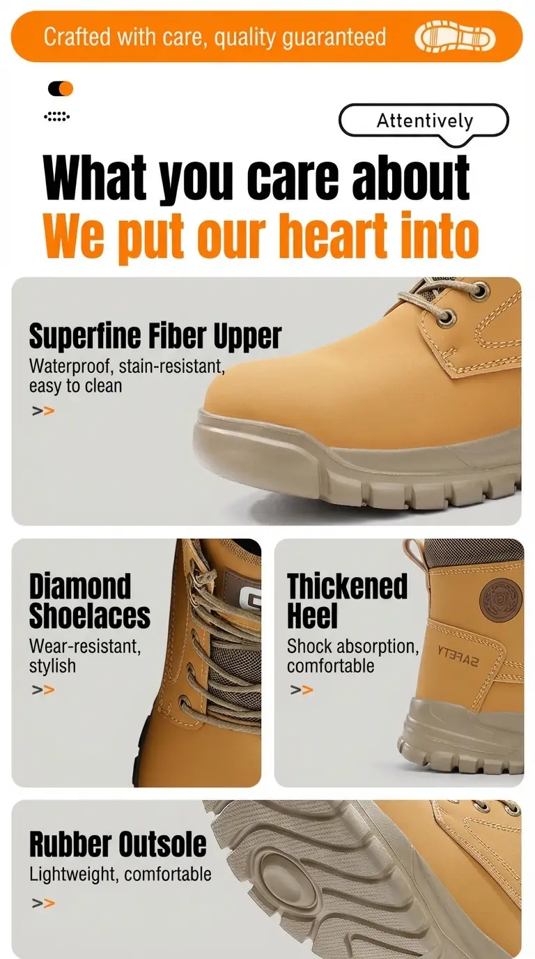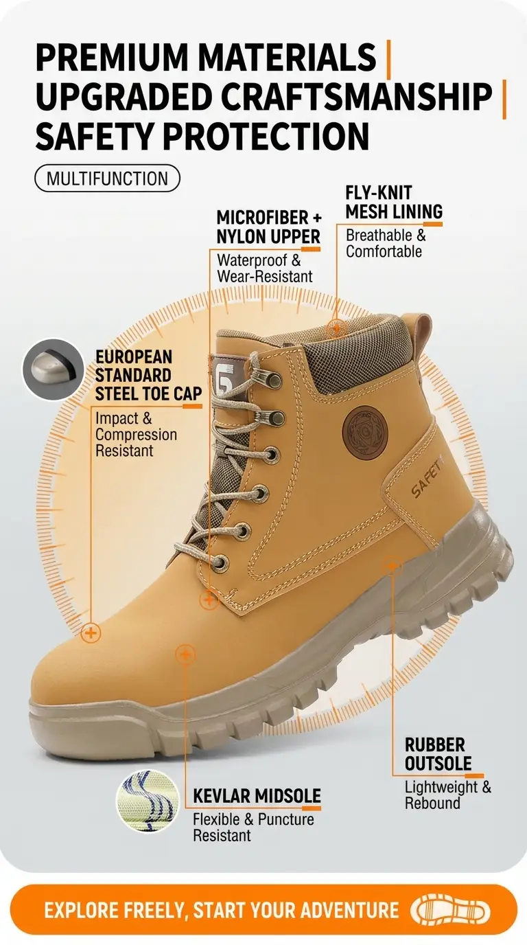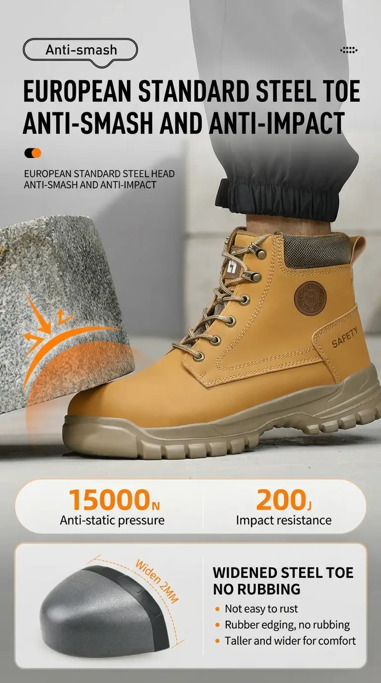 Toe Cap: European standard impact-resistant steel toe cap with impact resistance of 200 joules;