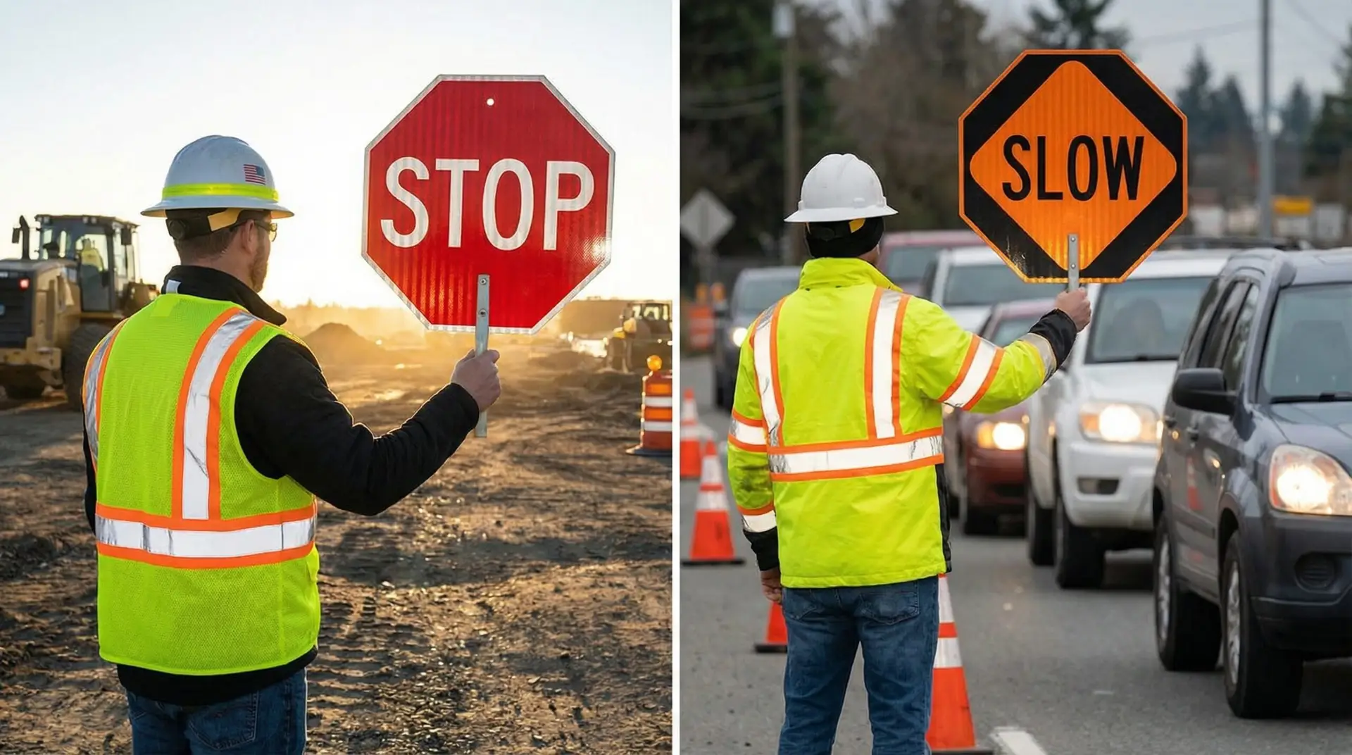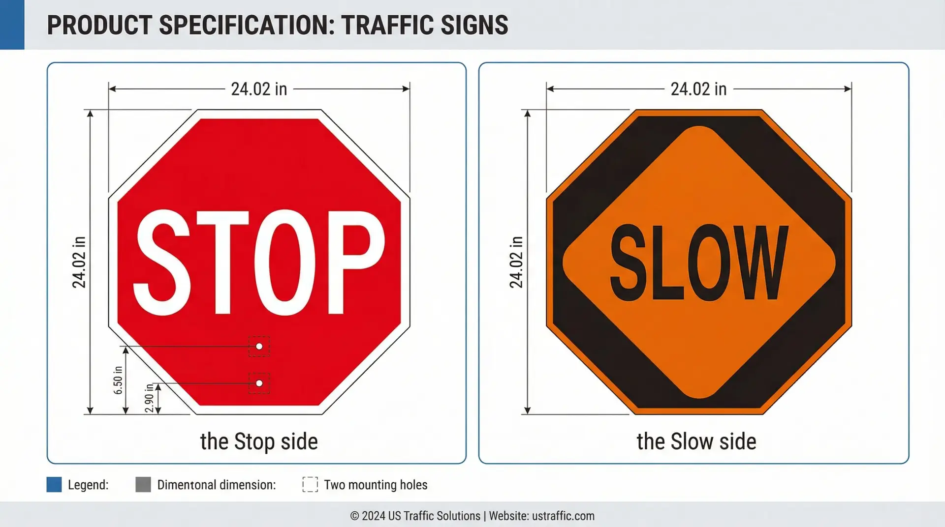 Clearly marked STOP on one side and SLOW on the other, allowing quick, reliable traffic direction without changing equipment.