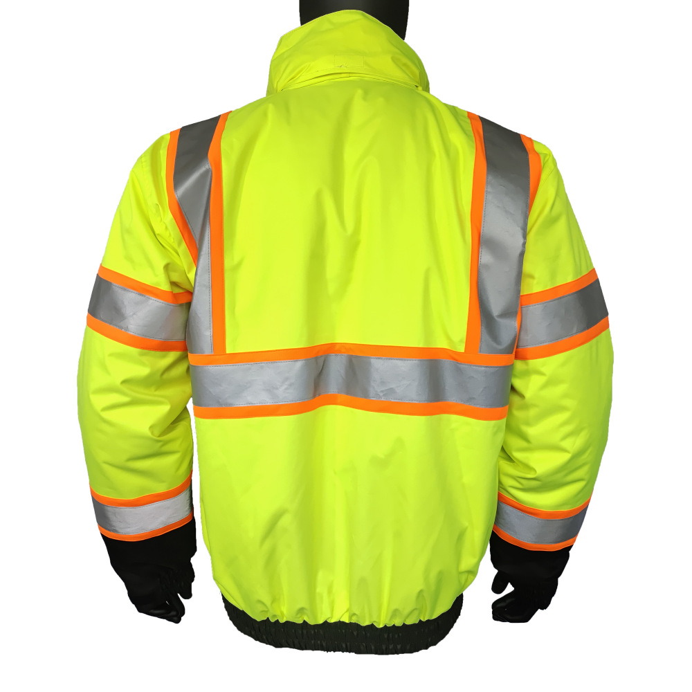 Product Overview: Conquer the cold and stay safe on the job with our ANSI Class 3 certified high-visibility winter bomber jacket. This heavy-duty jacket is specifically engineered for professionals working in low-light and freezing conditions, combining extreme visibility with superior thermal protection.